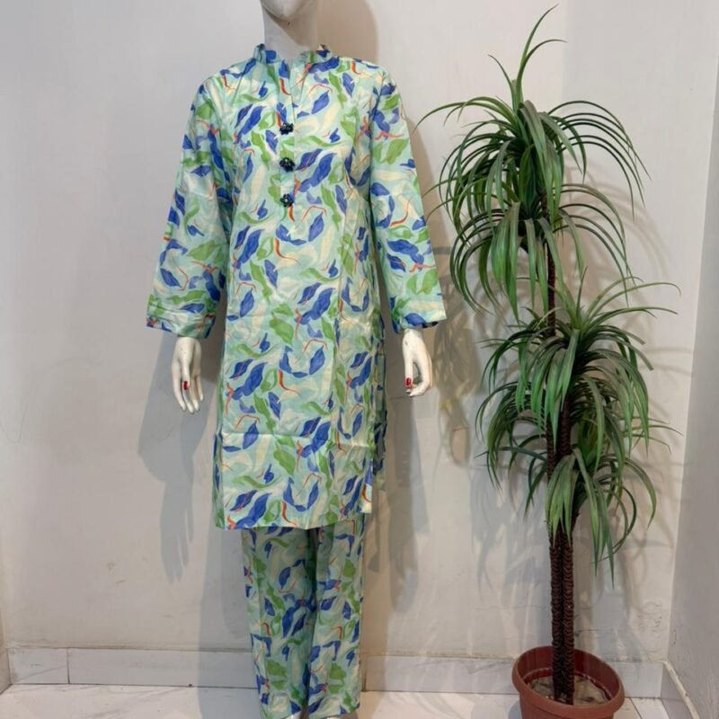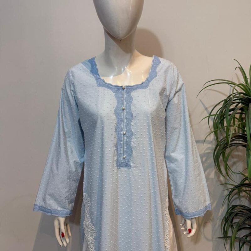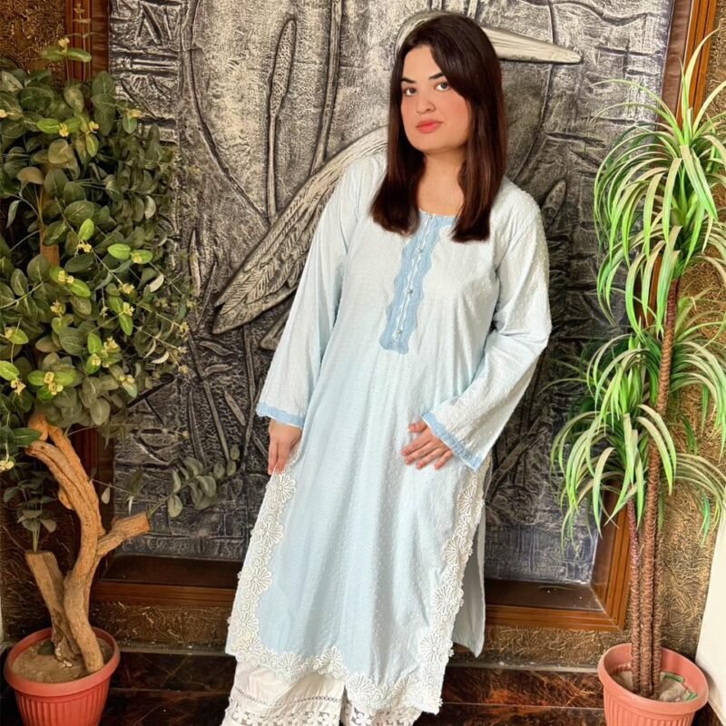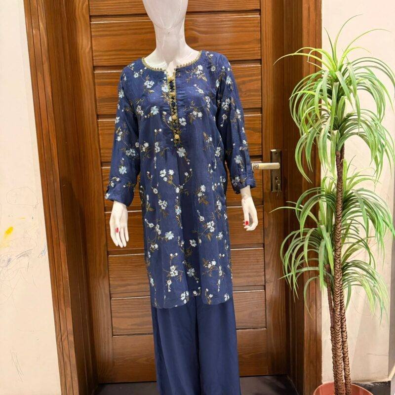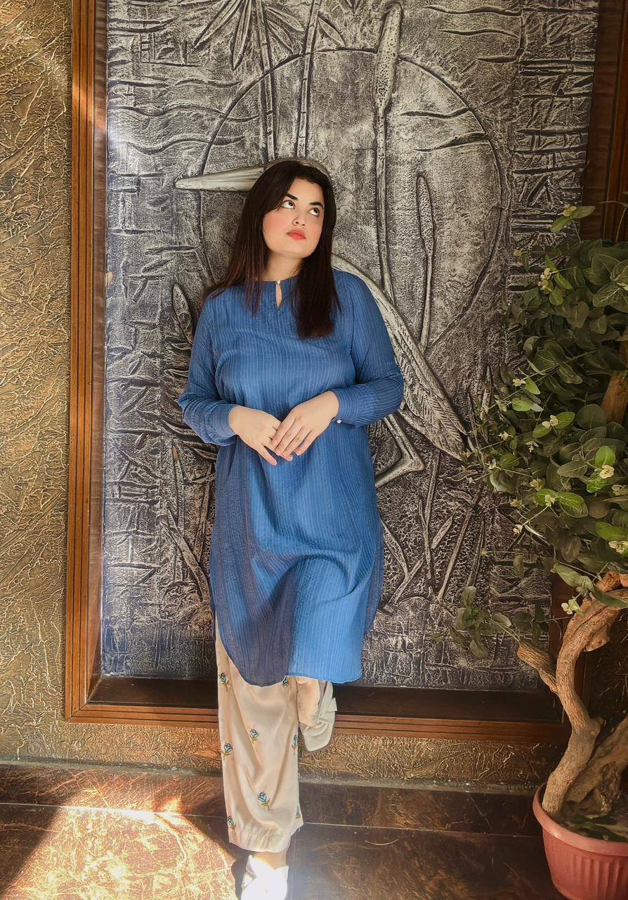 Self Jacquart Fabric Shirt on Cobalt Blue col0r with ivory base embroidered Cullotes