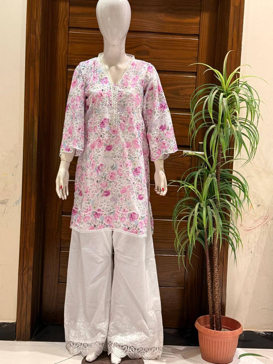 A soft blend of floral charm and classic chikankari embroidery — crafted on premium fabric for timeless grace.